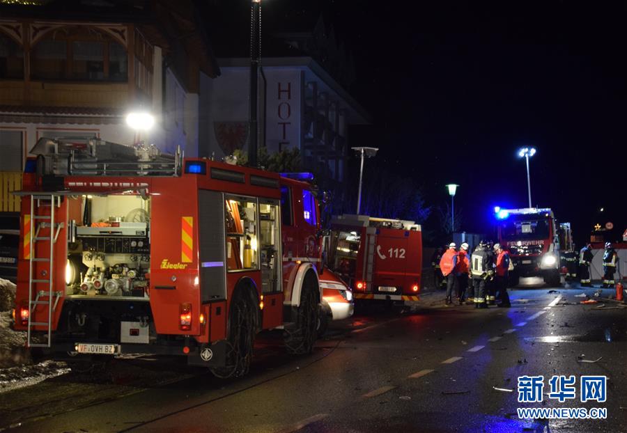 这张当地消防部门提供的照片显示,1月5日,在意大利北部城市卢塔克,医疗人员和消防员在交通事故现场工作。新华社发