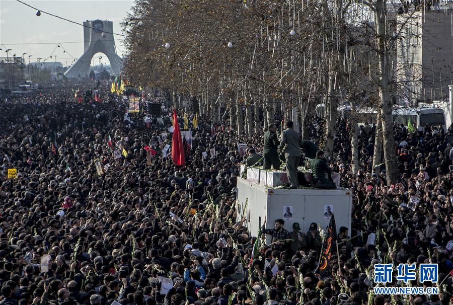 1月7日,在伊朗克尔曼市,人们参加伊朗指挥官苏莱曼尼的葬礼。 据伊朗电视台7日报道,当天在伊朗克尔曼市为伊朗指挥官苏莱曼尼举行的葬礼上发生踩踏事故,至少35人死亡、48人受伤。 新华社/美联