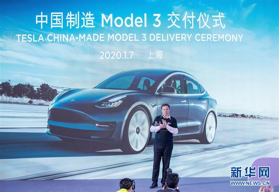 1月7日,在特斯拉上海超级工厂,特斯拉首席执行官马斯克出席中国制造Model 3交付仪式。 当日,特斯拉宣布启动在上海超级工厂制造Model Y汽车项目。同时,首批Model 3汽车在上海向公众进行交付。 新华社记者 丁汀 摄