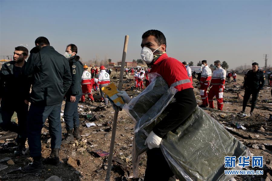 1月8日,在伊朗德黑兰霍梅尼国际机场附近,救援人员在坠机现场工作。 新华社发(伊斯兰共和国通讯社供图)