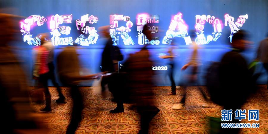 1月8日,在美国拉斯维加斯消费电子展上,人们从一个展板前走过。 2020年美国拉斯维加斯消费电子展于7日正式开幕。为期4天的展会吸引来自160多个国家和地区的约4500家企业参展。 新华社记者 吴晓凌 摄