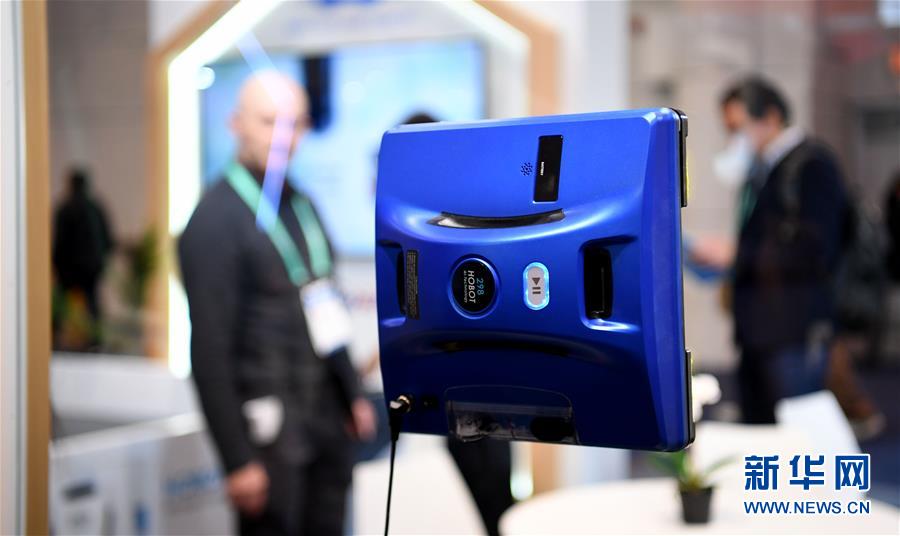 1月9日,在美国拉斯维加斯举行的消费电子展上,观众观看擦窗机器人。 1月10日,为期4天的2020年美国拉斯维加斯消费电子展闭幕。 新华社记者 吴晓凌 摄