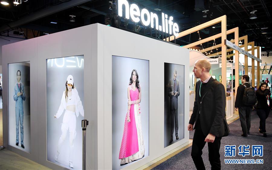 1月10日,观众在美国拉斯维加斯举行的消费电子展上的NEON展台参观。 1月10日,为期4天的2020年美国拉斯维加斯消费电子展闭幕。 新华社记者 吴晓凌 摄