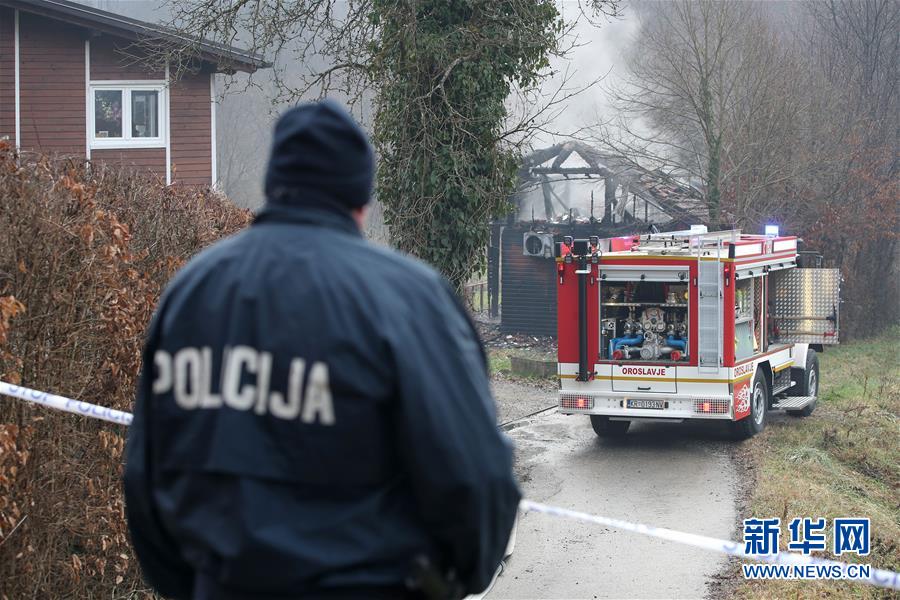 1月11日,在克罗地亚克拉皮纳-扎戈列省,一名警察望向被大火烧毁的养老院房屋。新华社发(伊戈尔·克拉利耶 摄)