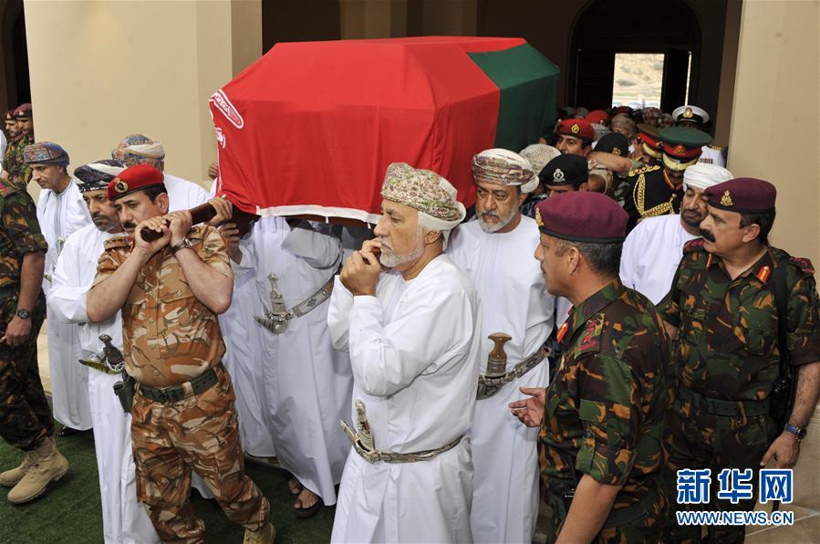 1月11日,在阿曼首都马斯喀特,士兵运送卡布斯的灵柩。 已故阿曼苏丹卡布斯的葬礼11日在首都马斯喀特举行。当天早些时候宣誓就职的阿曼新苏丹海赛姆率政府重要官员、军队高级将领等参加了葬礼。 新华社发