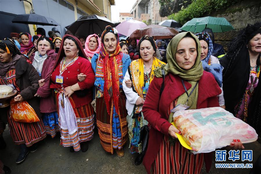 1月12日,在阿尔及利亚提济乌祖省一个村庄,柏柏尔人穿着民族服装庆祝柏柏尔新年。新华社发