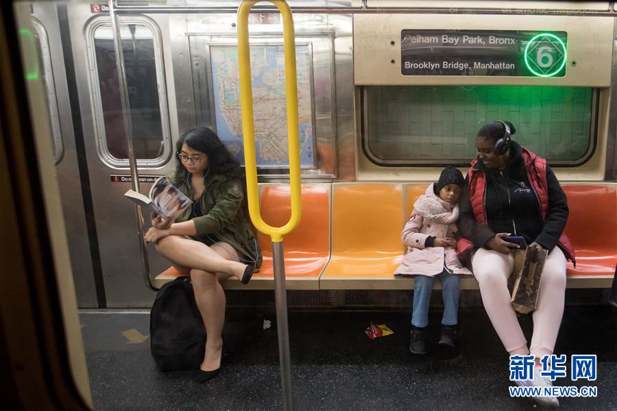 当日,美国纽约举行“不穿裤子搭地铁”活动。“不穿裤子搭地铁”活动2002年始于纽约。此后,这项行为艺术逐渐演变为世界多个城市的年度活动。 新华社发(郭克摄)