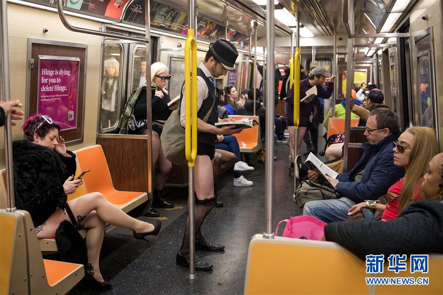 当日,美国纽约举行“不穿裤子搭地铁”活动。“不穿裤子搭地铁”活动2002年始于纽约。此后,这项行为艺术逐渐演变为世界多个城市的年度活动。 新华社发(郭克摄)