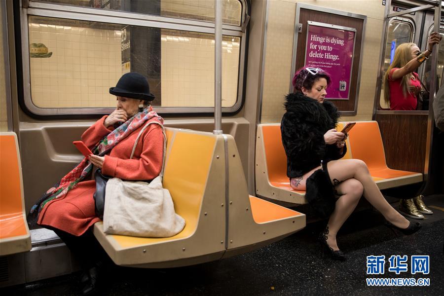 当日,美国纽约举行“不穿裤子搭地铁”活动。“不穿裤子搭地铁”活动2002年始于纽约。此后,这项行为艺术逐渐演变为世界多个城市的年度活动。 新华社发(郭克摄)