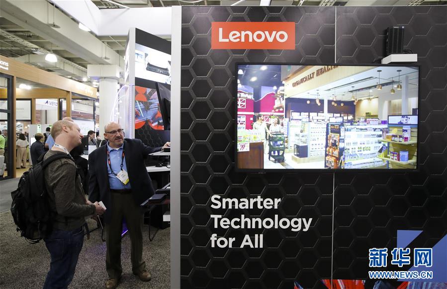 1月12日,在美国纽约的全国零售商联合会年度大会上,人们参观提供零售业解决方案的展台。新华社记者 王迎 摄