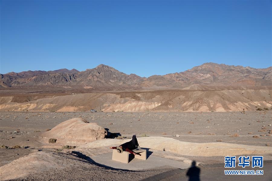1月11日,一名游客在美国加利福尼亚州死亡谷游览时躺在石凳上休息。 位于美国加州东部的死亡谷属于莫哈韦沙漠的一部分,是美国最大、也是最干旱的国家公园。死亡谷恶水盆地附近的地势低于海平面约86米,为北美洲最低点。 新华社记者 吴晓凌 摄