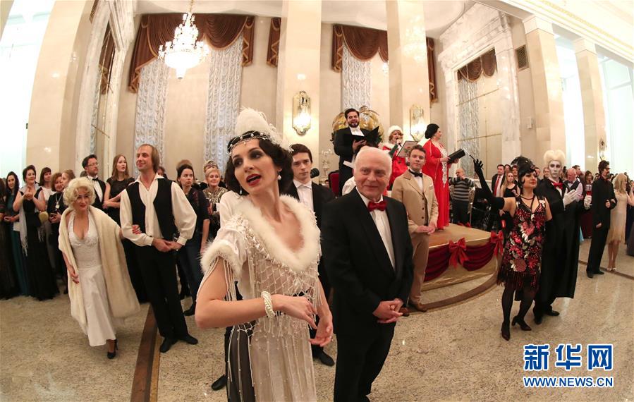 1月13日,在白俄罗斯首都明斯克,身着节日盛装的人们参加舞会。当日,白俄罗斯首都明斯克举办舞会,迎接俄历新年的到来。1月14日是俄历新年。新华社发(任科夫摄)