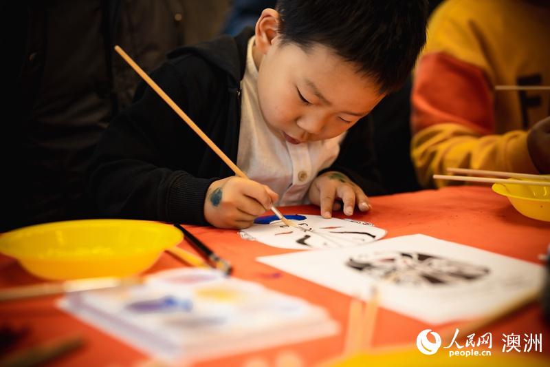小朋友给京剧脸谱上色(摄影 张健勇)