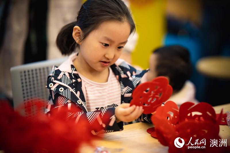 小朋友认真制作灯笼福球(摄影 张健勇)