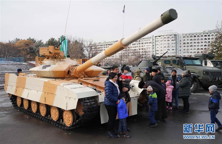 1月14日,在乌兹别克斯坦首都塔什干,当地民众在广场参观武器展。 新华社发(扎法尔摄)