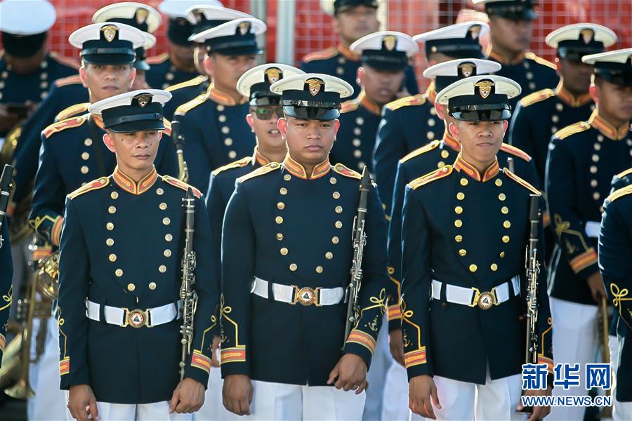 这是1月14日在菲律宾马尼拉港15号码头拍摄的参与舰艇欢迎仪式的菲律宾海警。 参加中菲海警海上合作联合委员会第三次会议暨第二次高层会晤系列友好交流活动的中国海警5204舰,14日上午靠泊在菲律宾马尼拉港15号码头。这是中国海警舰艇首次访问菲律宾。 新华社发(乌马利摄)