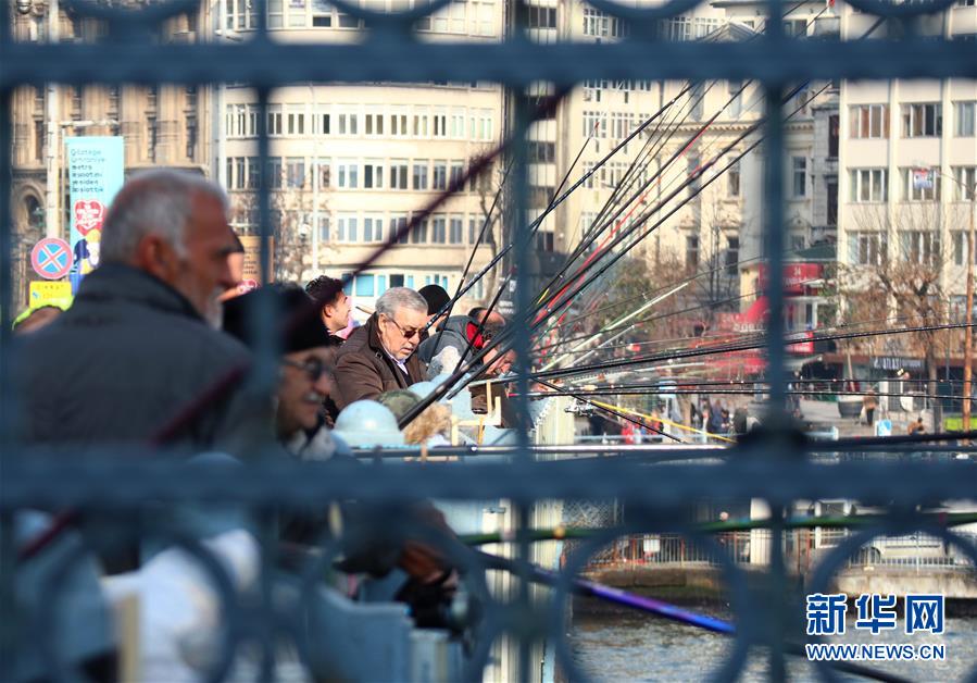 1月14日,在土耳其伊斯坦布尔,人们在海边垂钓。 近日,土耳其最大城市伊斯坦布尔的气温转暖,不少垂钓爱好者来到海边,享受冬日的暖阳和垂钓的乐趣。 新华社记者 徐速绘 摄