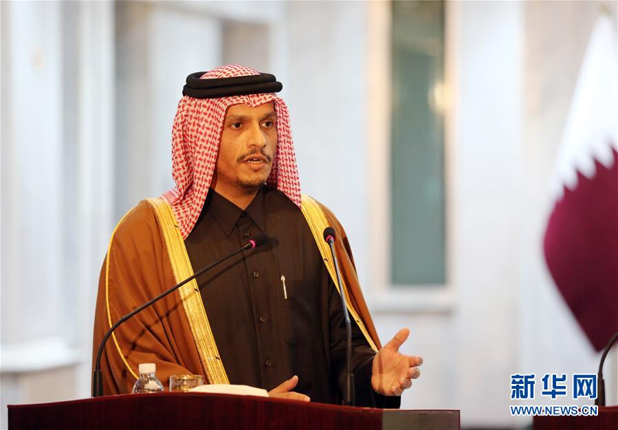 1月15日,在伊拉克巴格达,到访的卡塔尔副首相兼外交大臣穆罕默德·本·阿卜杜勒拉赫曼·阿勒萨尼出席新闻发布会。 新华社发(哈利勒·达伍德摄)