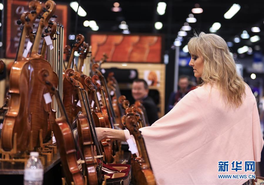 1月16日,在美国加利福尼亚州阿纳海姆,人们在美国乐器展上参观。 2020年度美国阿纳海姆国际乐器、舞台灯光及音响展览会(简称美国乐器展)16日在加利福尼亚州阿纳海姆会展中心拉开帷幕。 新华社记者李颖摄