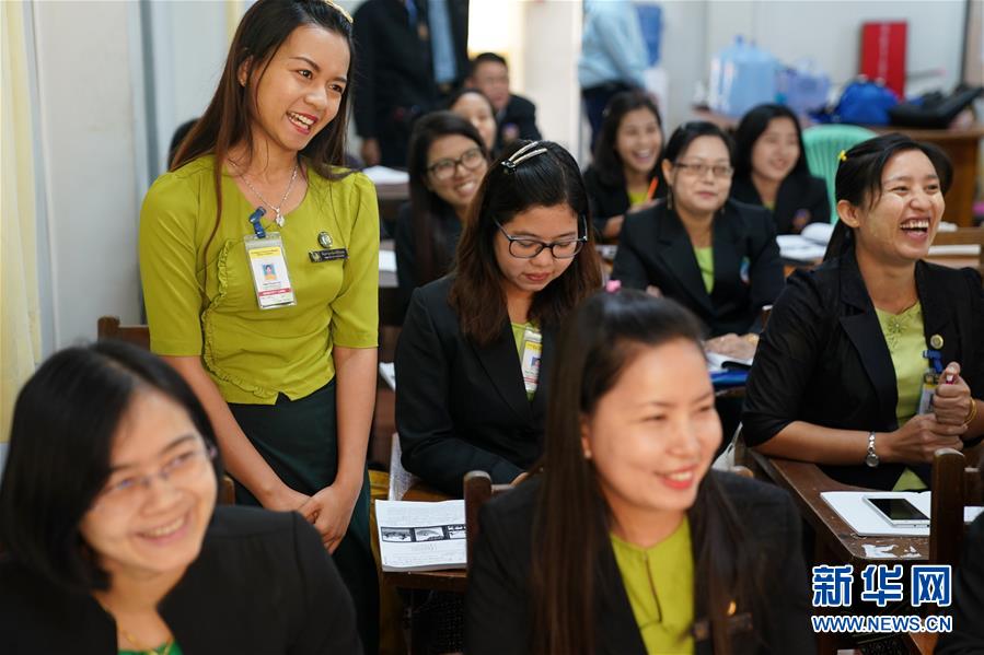 1月14日,在缅甸首都内比都,来自缅甸商务部的公务员用中文回答老师提问。 新华社记者 王申 摄