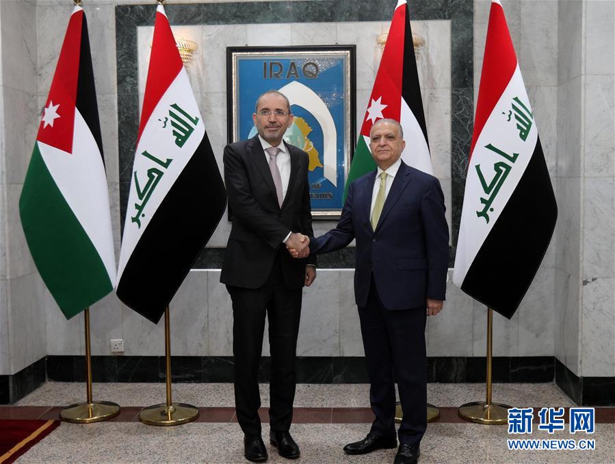 1月18日,在伊拉克巴格达,伊拉克外长哈基姆(右)会见到访的约旦外交大臣萨法迪。 当日,伊拉克外长哈基姆与到访的约旦外交大臣萨法迪在巴格达举行会谈,双方讨论了缓和地区紧张局势和打击恐怖主义等问题。 新华社发(哈利勒·达伍德 摄)