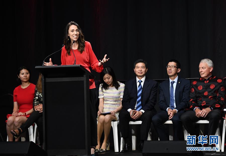 1月18日,在新西兰最大城市奥克兰,新总理杰辛达·阿德恩(左二)出席“新春花市同乐日”活动并讲话。 新西兰一年一度的华人社团迎接农历新春活动“新春花市同乐日”18日在新西兰最大城市奥克兰举行。新西兰总理杰辛达·阿德恩一袭红装出席活动,她称赞华人所作贡献,并称新中关系成熟稳健,立足长远。 新华社记者 郭磊 摄