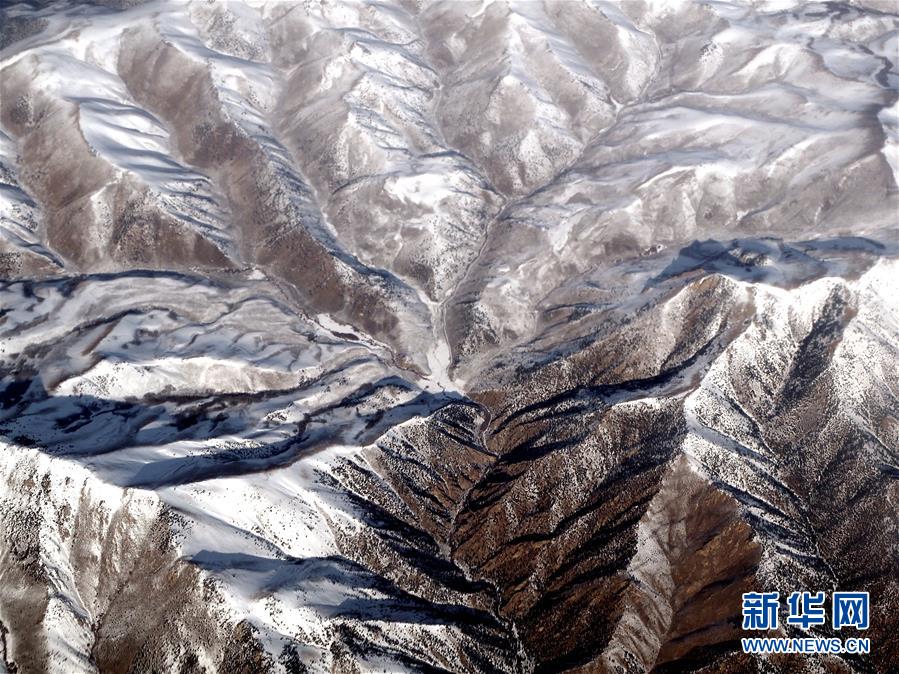 这是1月18日在美国阿拉斯加航空1022航班上拍摄的被白雪覆盖的山地。 新华社记者 吴晓凌 摄
