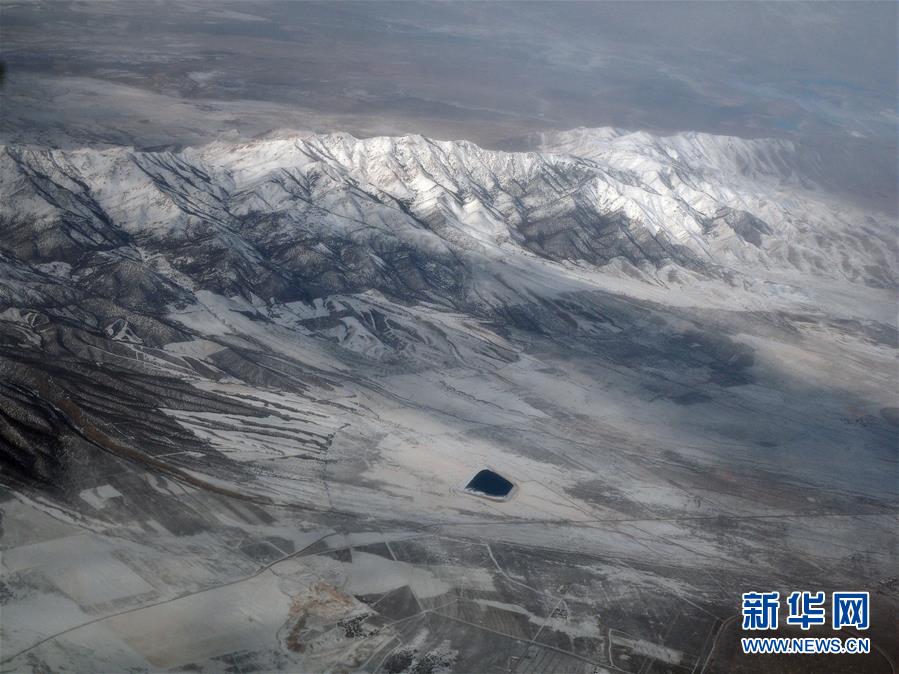 这是1月18日在美国阿拉斯加航空1022航班上拍摄的被白雪覆盖的山地。 新华社记者 吴晓凌 摄