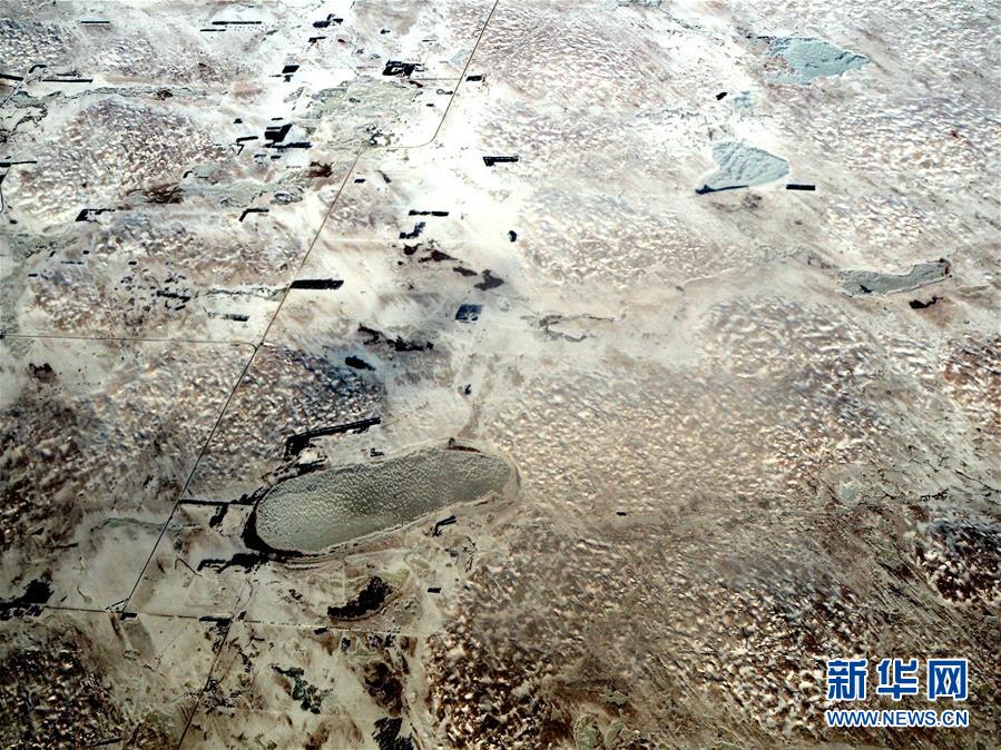 这是1月18日在美国阿拉斯加航空1022航班上拍摄的被白雪覆盖的土地。 新华社记者 吴晓凌 摄