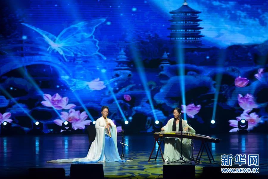 1月19日,在马来西亚吉隆坡,两名乐手表演民乐合奏《春江花月夜》。 1月19日,2020“中国马来西亚文化旅游年”在马来西亚首都吉隆坡正式开幕。来自两国的艺术家当晚献上一场极具民族特色的文艺演出。 新华社发(张纹综 摄)