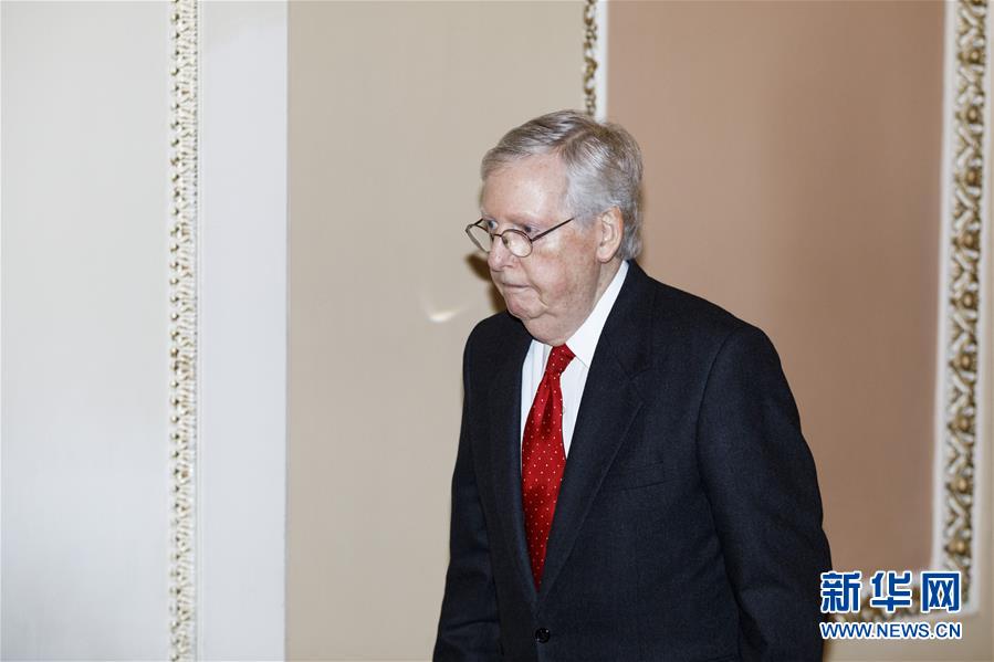 1月21日,在美国华盛顿,美国国会参议院多数党领袖麦康奈尔前往参议院。 当日,美国国会参议院开始正式审理针对总统特朗普的弹劾案,首日焦点是就弹劾案审理流程决议草案进行辩论和投票。 新华社发(沈霆 摄)