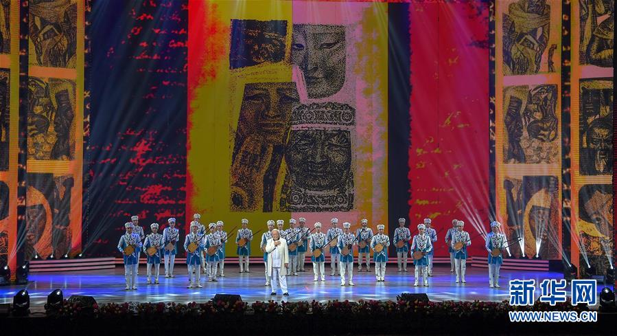1月21日,在哈萨克斯坦努尔苏丹阿斯塔纳歌剧院,艺术家在台上表演。新华社发(哈萨克斯坦总统府供图)
