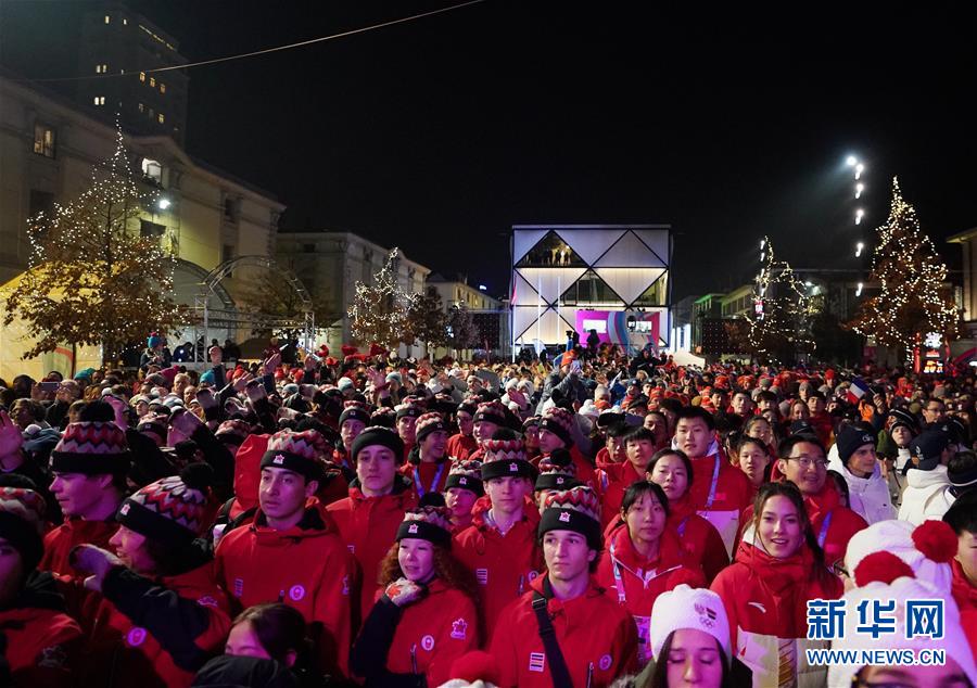 1月22日,青年运动员参加闭幕式。 当日,第三届冬季青年奥林匹克运动会在瑞士洛桑闭幕。 新华社记者张晨霖摄