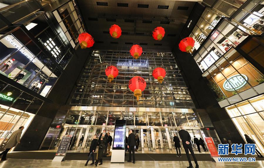 1月22日,美国纽约哈得孙城市广场购物中心内挂起大红灯笼,庆祝中国春节。 新华社记者 王迎 摄