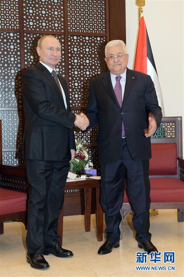 1月23日,在约旦河西岸城市伯利恒,巴勒斯坦总统阿巴斯(右)会见俄罗斯总统普京。 当日,巴勒斯坦总统阿巴斯在伯利恒会见到访的俄罗斯总统普京。双方讨论了地区事务的最新进展。 新华社发(巴勒斯坦总统办公室供图)