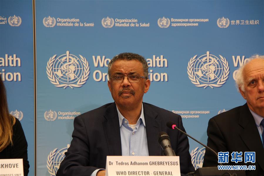 1月23日,在瑞士日内瓦世界卫生组织总部,世卫组织总干事谭德塞(中)在记者会上发言。 世界卫生组织23日宣布,新型冠状病毒疫情尚未构成国际关注的突发公共卫生事件。 新华社记者刘曲摄