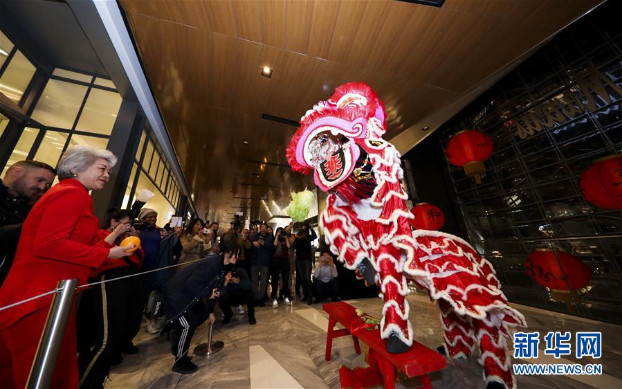 1月22日,在纽约哈得孙城市广场,演员在中国春节庆祝活动上表演舞狮。 新华社记者 王迎 摄