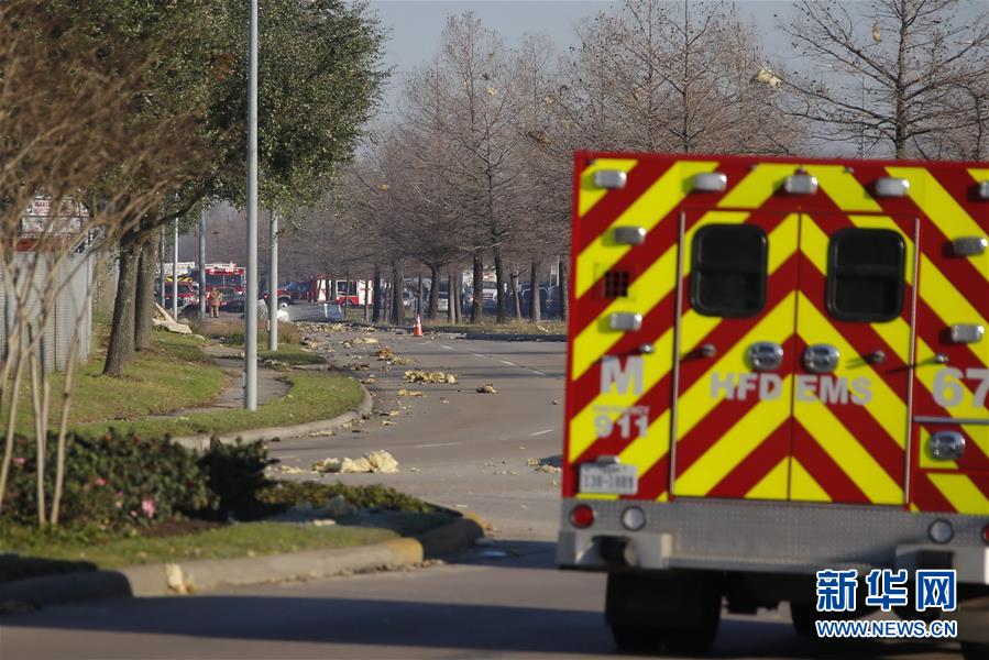 这是1月24日在美国得克萨斯州休斯敦市爆炸现场附近拍摄的消防车辆。 美国得克萨斯州休斯敦市一家工厂24日发生爆炸,警方证实爆炸已造成2人死亡。 新华社发(劳承跃 摄)