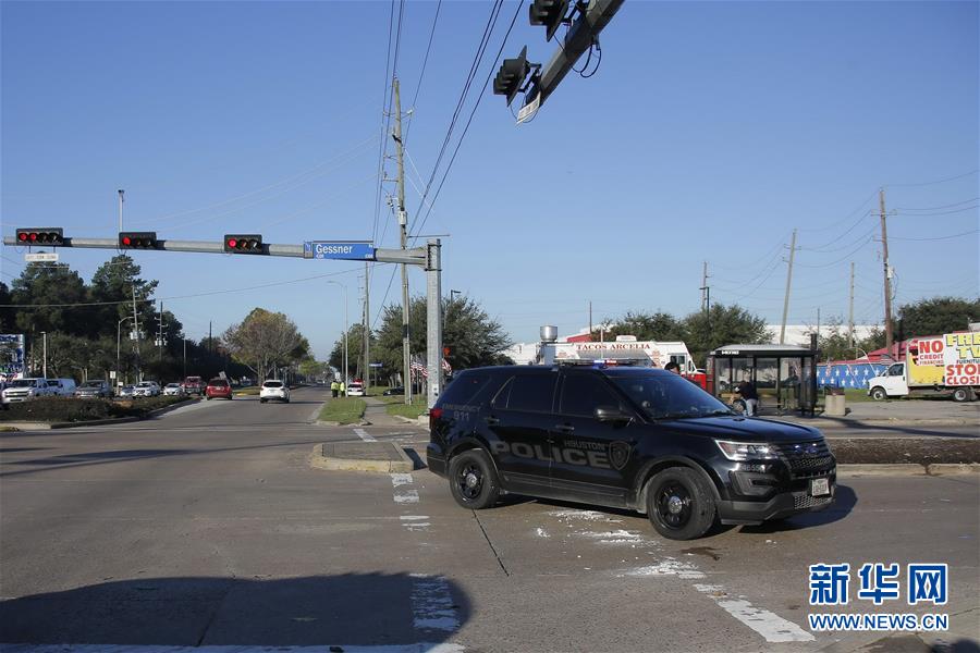 1月24日,在美国得克萨斯州休斯敦市,一辆警车在爆炸现场附近行驶。 美国得克萨斯州休斯敦市一家工厂24日发生爆炸,警方证实爆炸已造成2人死亡。 新华社发(劳承跃 摄)
