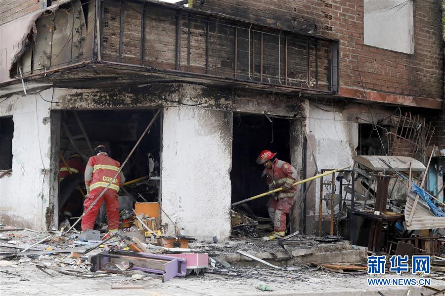 1月23日,在秘鲁首都利马,消防员在液化天然气运输车爆炸事故现场工作。 秘鲁医疗卫生机构24日说,利马23日发生的液化天然气运输车爆炸事故已造成8人死亡。 新华社发(玛利亚娜·巴索摄)