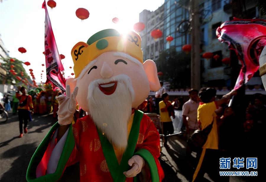 1月25日,在缅甸仰光唐人街,人们参与庆新春活动。 当日,缅甸仰光举办活动庆祝中国农历鼠年新春的到来。 新华社发(吴昂摄)