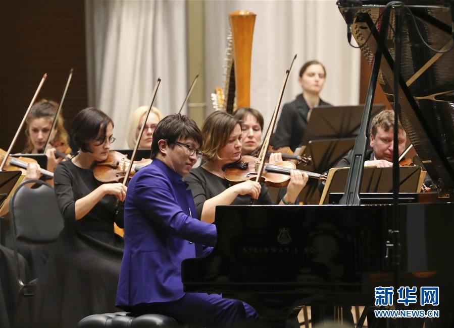 1月24日晚,在白俄罗斯首都明斯克,中国青年钢琴家元杰(前)与白俄罗斯艺术工作者在“中国新年”音乐会上同台演出。 为了迎接1月25日的中国农历鼠年新春,全世界不同地区的人们举行了形式多样的庆祝活动。 新华社发(任科夫摄)