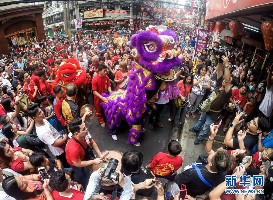 1月25日,在菲律宾马尼拉,演员在庆新春活动上表演舞狮。 当日,菲律宾马尼拉举办活动庆祝中国农历鼠年新春的到来。 新华社发(乌马利摄)