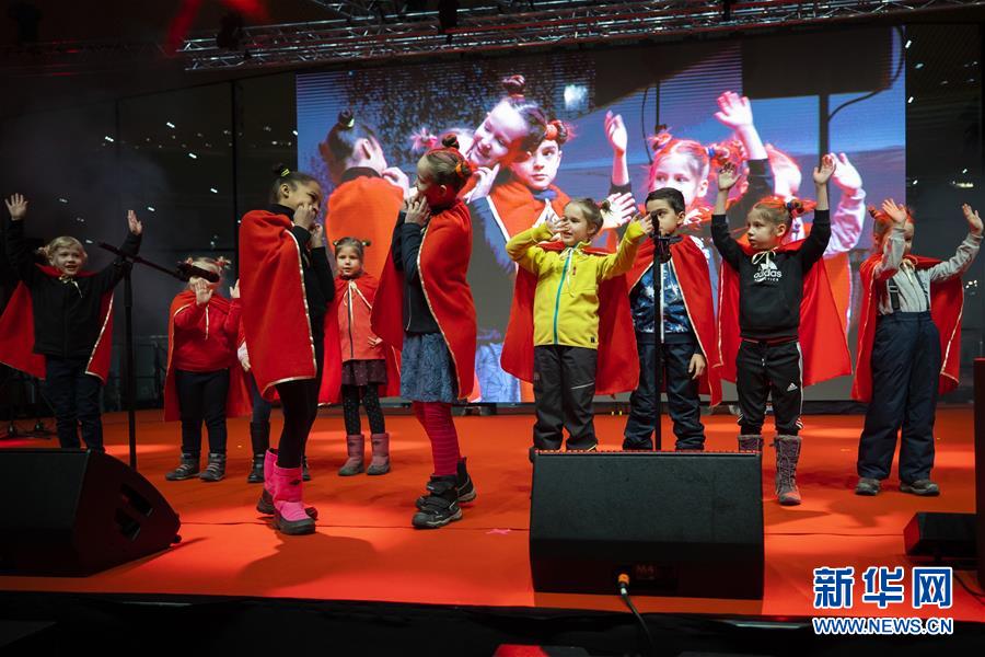 1月24日,在芬兰赫尔辛基公民广场上举行的“欢乐春节·赫尔辛基庙会”上,少年儿童在舞台上表演,庆祝中国农历鼠年新春的到来。 1月24日是中国农历大年三十,大量赫尔辛基市民及游客来到市中心的公民广场,在“欢乐春节·赫尔辛基庙会”上体验中国年味儿,欣赏来自中国北京市及当地的文艺团体带来的精彩演出。“欢乐春节·赫尔辛基庙会”已连续举办了十四届,成为当地知名节庆活动。 新华社发(马蒂·马蒂凯宁摄)
