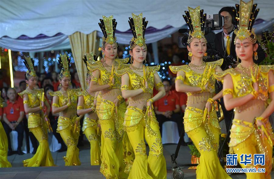 1月25日,在泰国曼谷,中国残疾人艺术团演员在唐人街“欢乐春节”活动开幕式上表演“千手观音”。 当日,泰国“欢乐春节”文化活动在曼谷唐人街拉开帷幕。 新华社发(拉亨 摄)