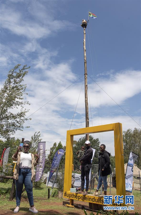 1月25日,在南非德尔斯特鲁姆小镇上,弗农·克鲁格的木桶挑战吸引了不少游客前来合影。 在距离约翰内斯堡以东300公里左右的德尔斯特鲁姆小镇上,52岁南非籍男子弗农·克鲁格于2019年11月14日开始再次挑战自己于1997年创造的在距离地面25米高木桶内居住54天的吉尼斯世界纪录。截至1月25日,他已经成功在木桶内居住72天,打破了自己创造的吉尼斯世界纪录。据悉,2月1日,他打算结束挑战,乘小型直升飞机回到地面。 新华社记者 陈诚 摄