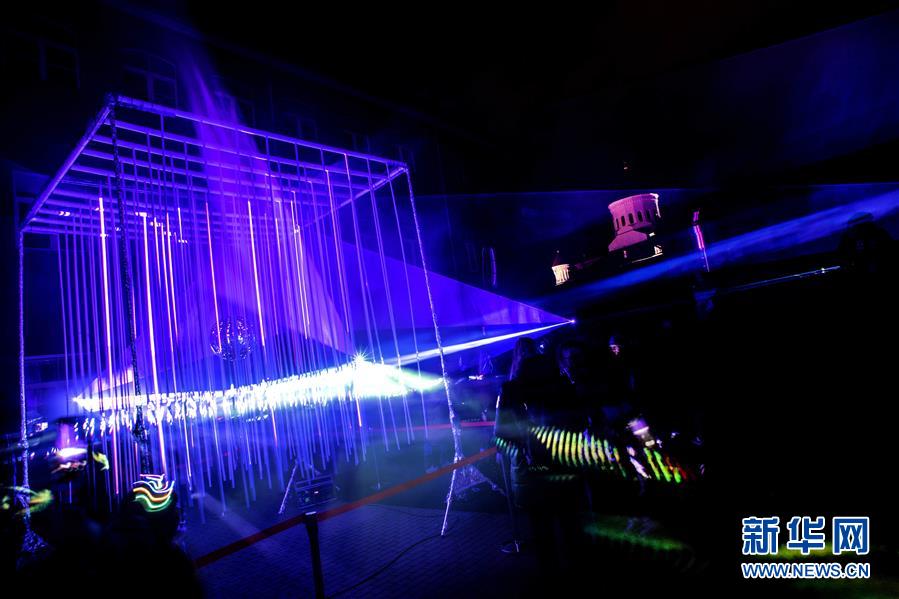 这是1月25日在立陶宛维尔纽斯灯光节上拍摄的灯光作品。新华社发(阿尔弗雷达斯·普里亚迪斯摄)