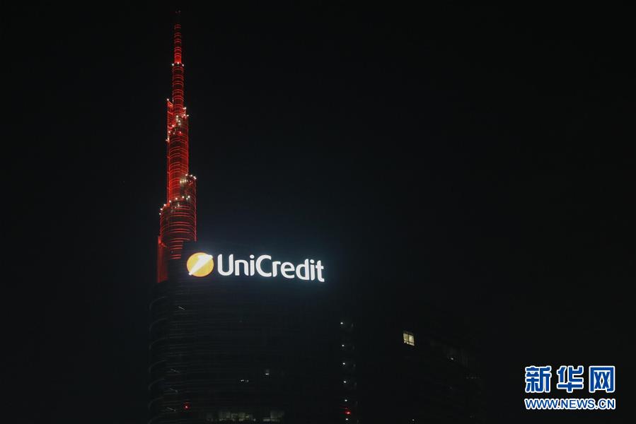 米兰:裕信银行塔点亮“中国红”庆春节