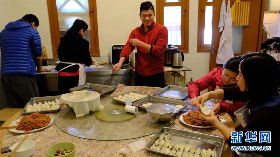1月26日,在摩洛哥南部小城拉希迪耶一座老旧公寓楼里,中国援摩洛哥医疗队拉希迪耶分队队员包饺子过春节。新华社记者 陈斌杰 摄