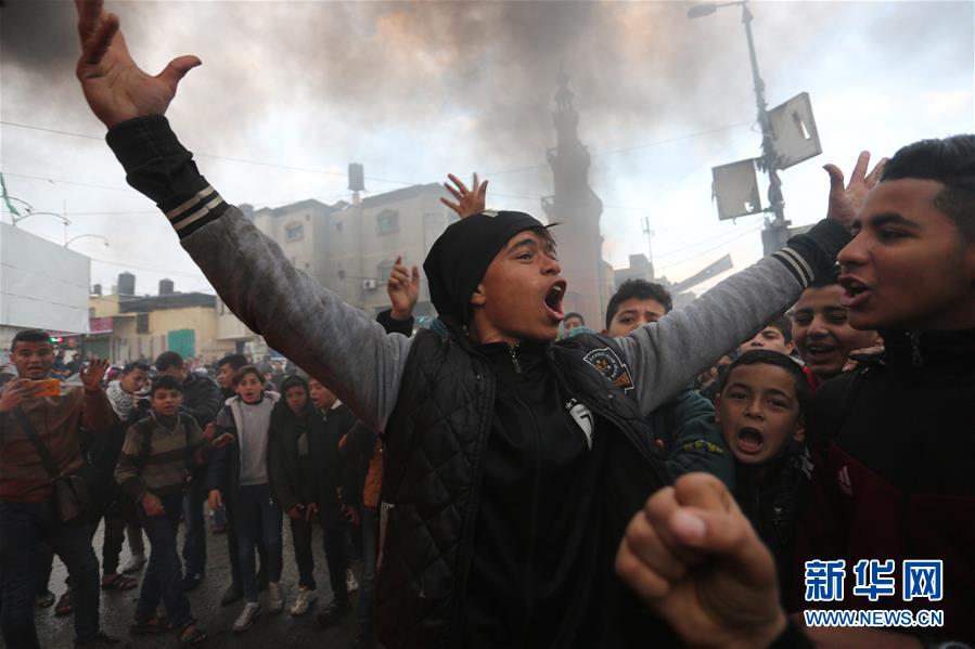1月29日,在加沙地带南部的汗尤尼斯,巴勒斯坦学生参加游行示威。 美国总统特朗普28日公布了所谓推动解决巴勒斯坦与以色列问题的“世纪协议”后,巴勒斯坦方面明确表示拒绝协议的全部内容,大批民众举行罢工、游行等活动,抵制该协议。 新华社发(亚西尔摄)